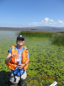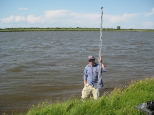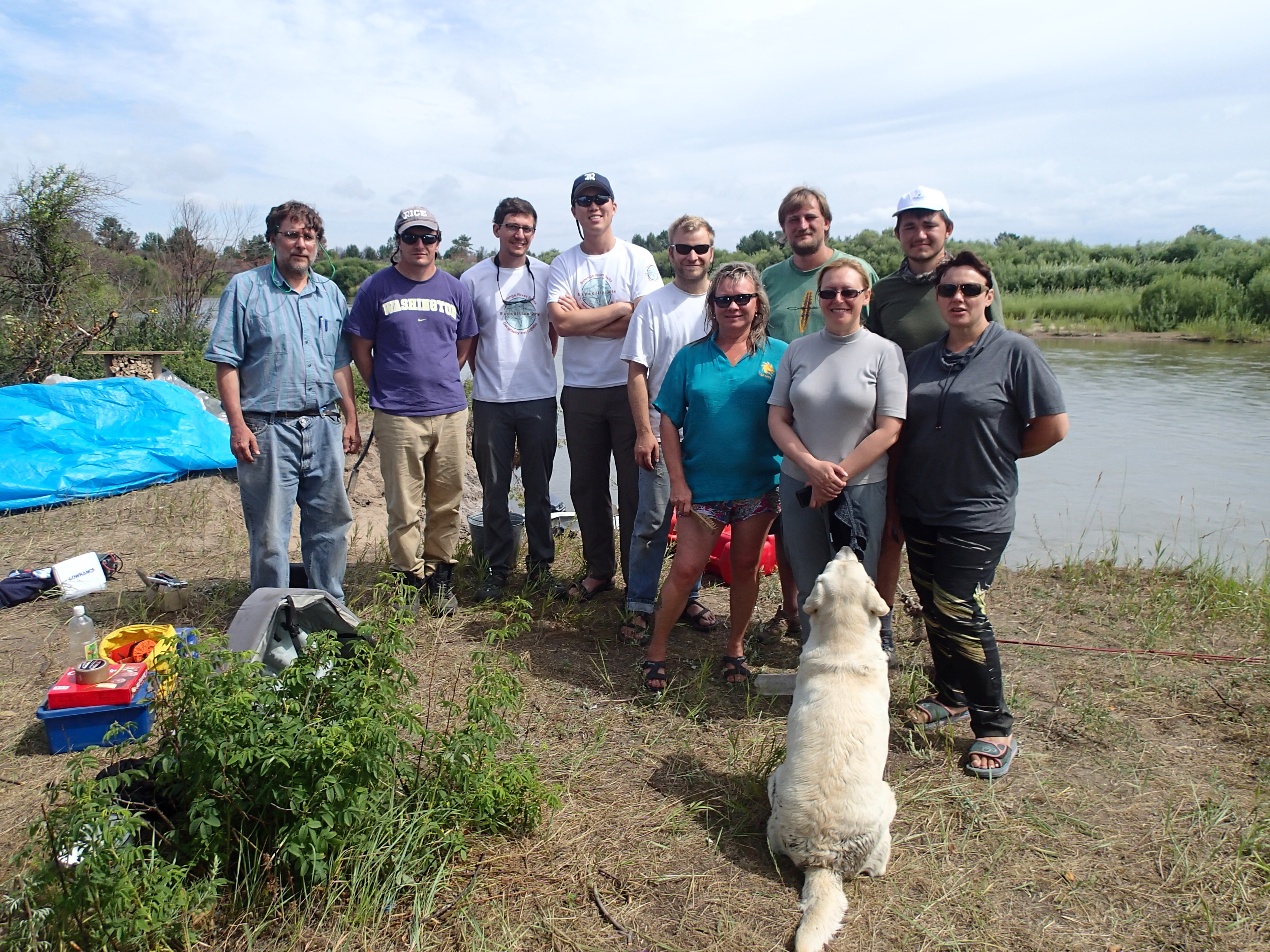 Buryats welcome scientists to the Selenga deltaBoats used for survey workSunset on the deltaLittle Russian friend guarding our samples!Collecting samples from sub-aqueous channelExpedition base campAdvisor measuring bank line elevationCrystal sky over the deltaGreat team of Russian and American scientists